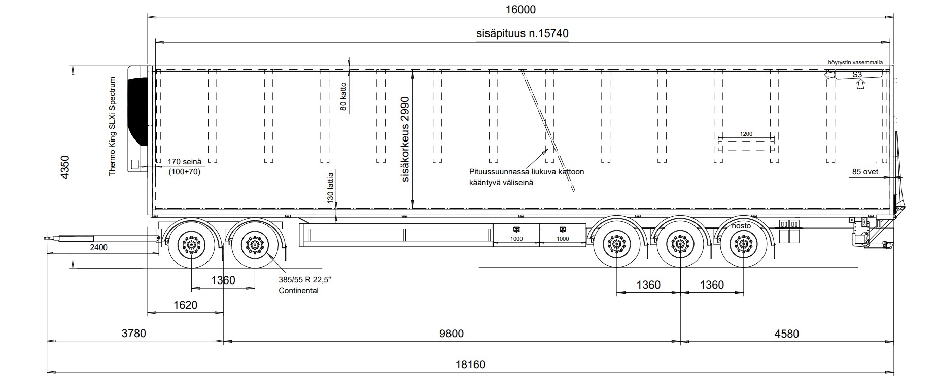 - Sisäpituus: 15740 mm